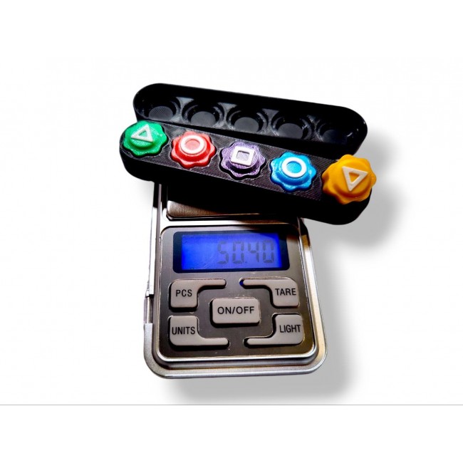 1 - Кожен камінь має свій обтяжувач, всі камені рівні по вазі(5,8г), кейс закривається будь якою стороною.